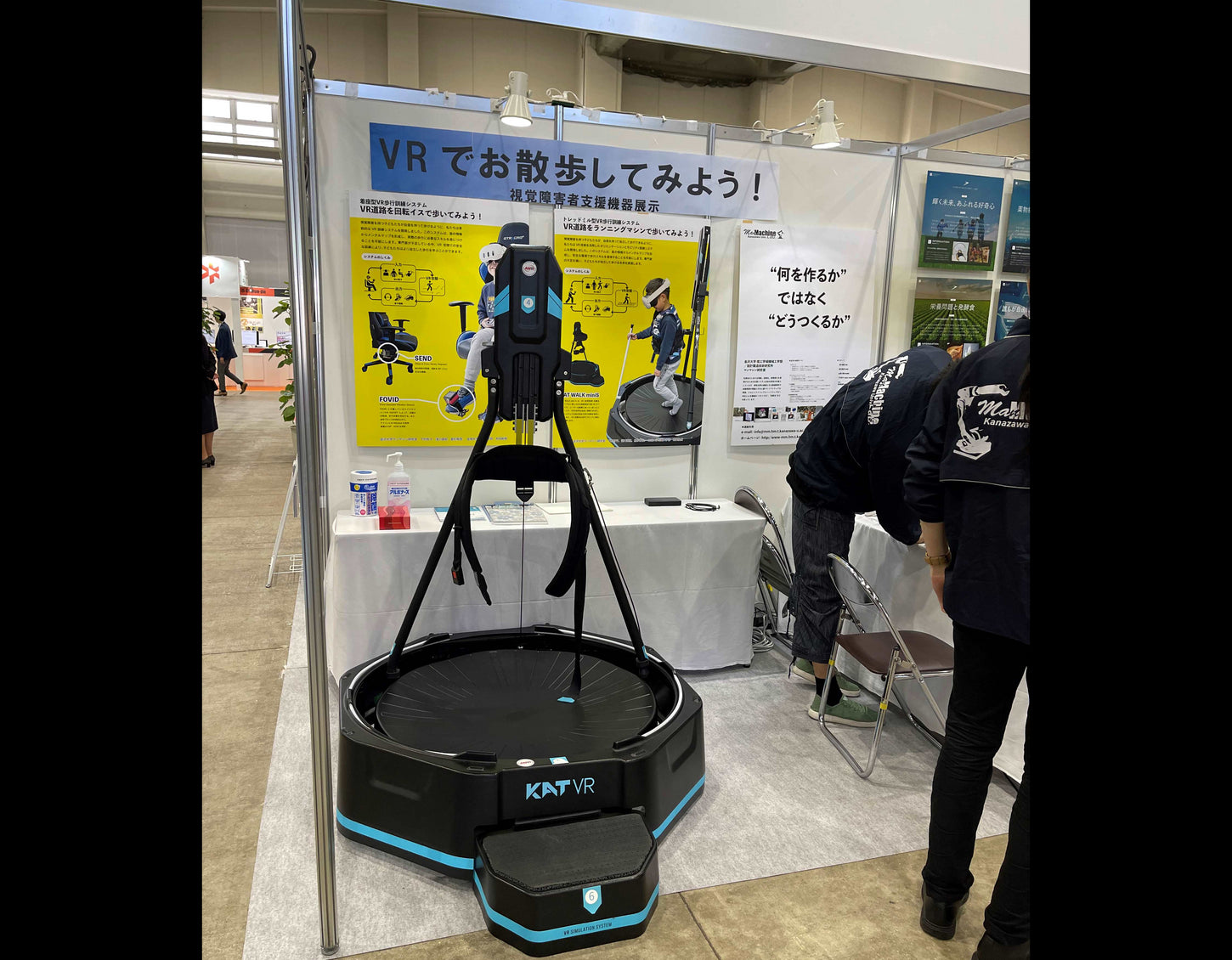 2024年10月17日-18日、福井県産業会館にて、視覚に障がいをお持ちの方への支援機器としてKATWALKを使用した出展が行われました。(音によるVRです。)多くの来場者、特に次世代を担う高校生の皆様に体験いただき、VRトレッドミル技術の可能性と魅力を体感していただきました。