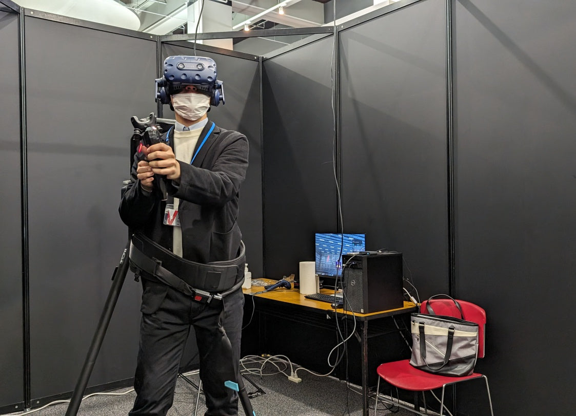 株式会社理経 様制作のVR防災体験ソフトウェア「ビル火災避難VR」による来場者向けの体験展示をいたしました。運用サポートも行わせて頂きました。
