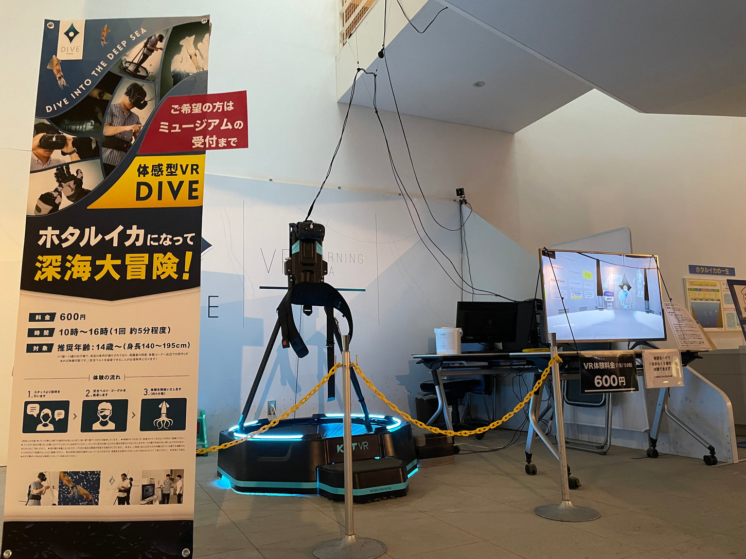ほたるいかミュージアムに展示しているVRホタルイカとKATVRを使用し、お客様に深海探索体験を提供
